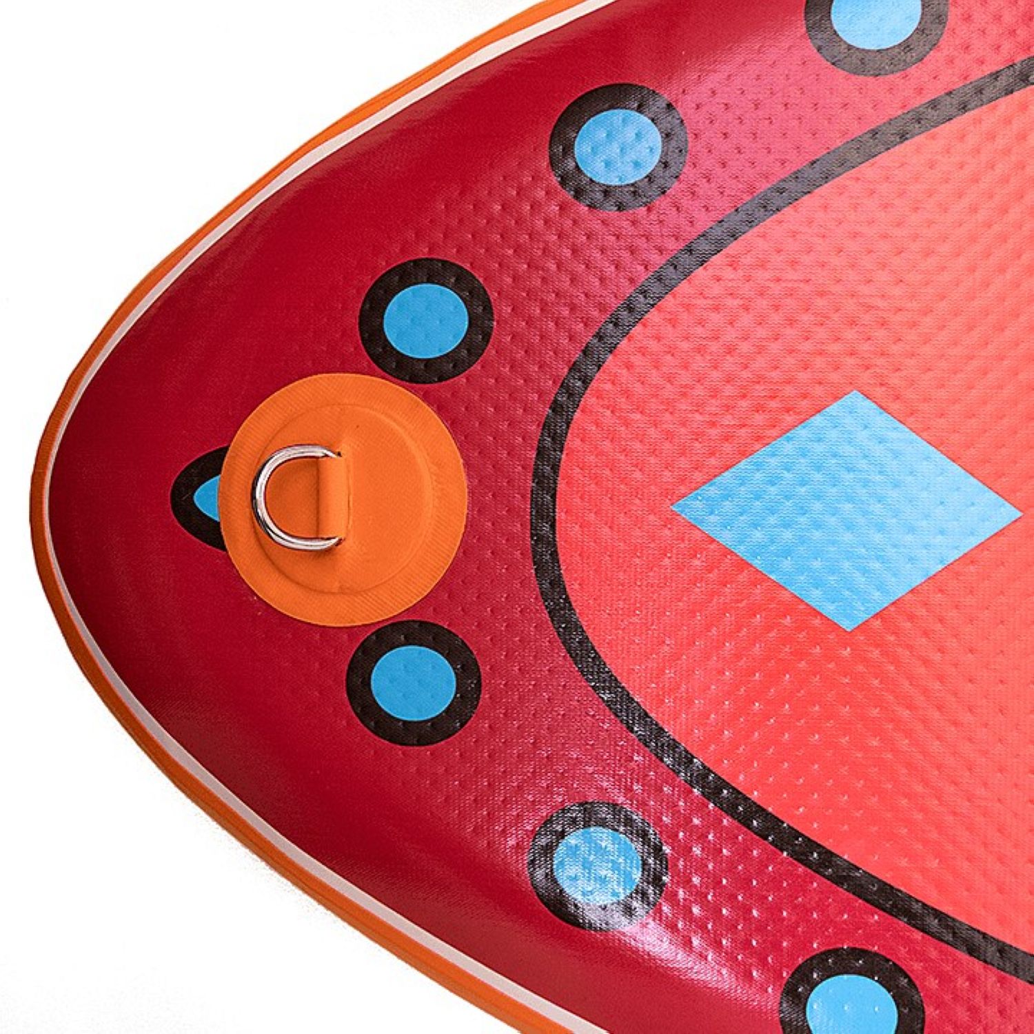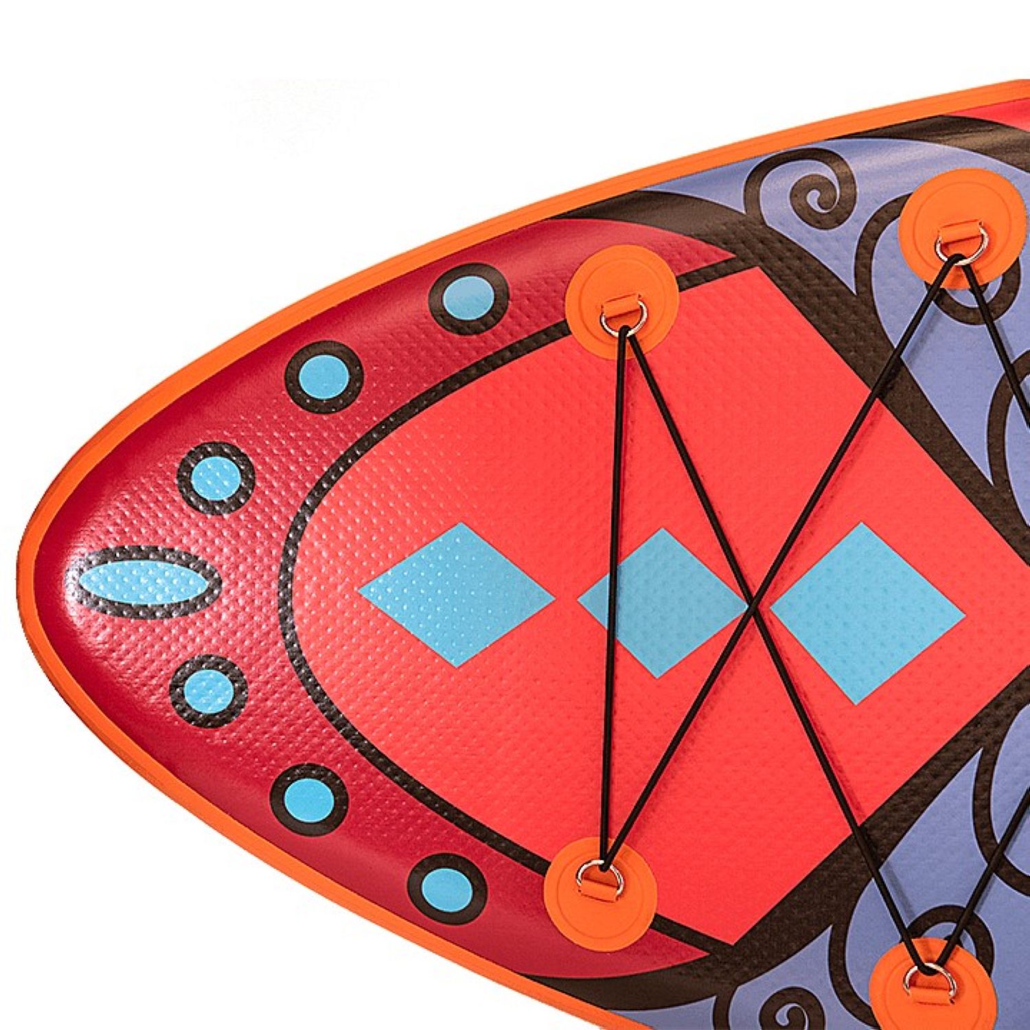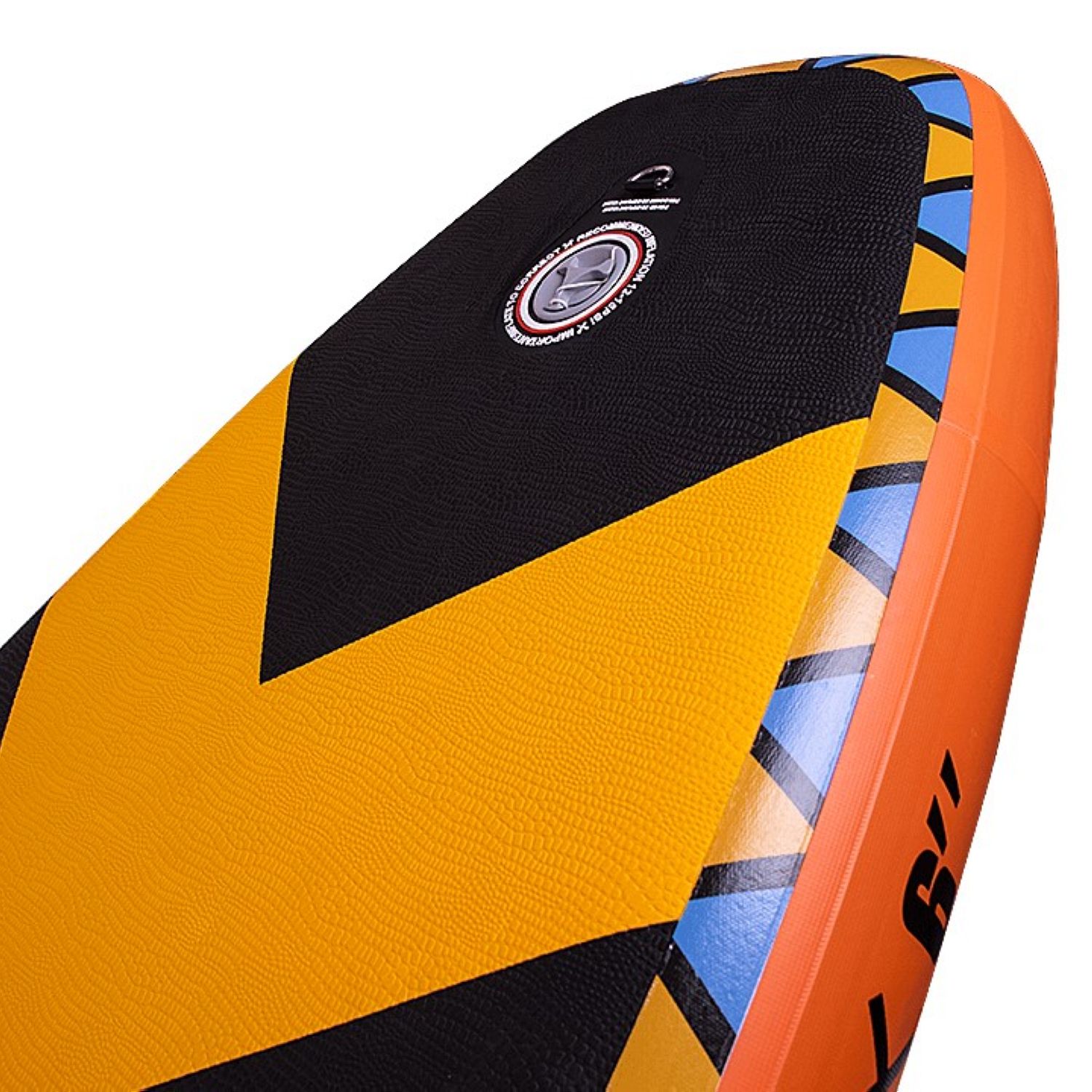 Шеститочечная карго-система (багажник) в носовой части надежно удержит груз на волнах. В передней нижней части доски размещено дополнительное D-кольцо, позволяющее швартовать его у берега или выполнять буксировку по воде. Насос двойного действия позволит быстро и компактно собрать сапборд в рюкзак после отдыха.