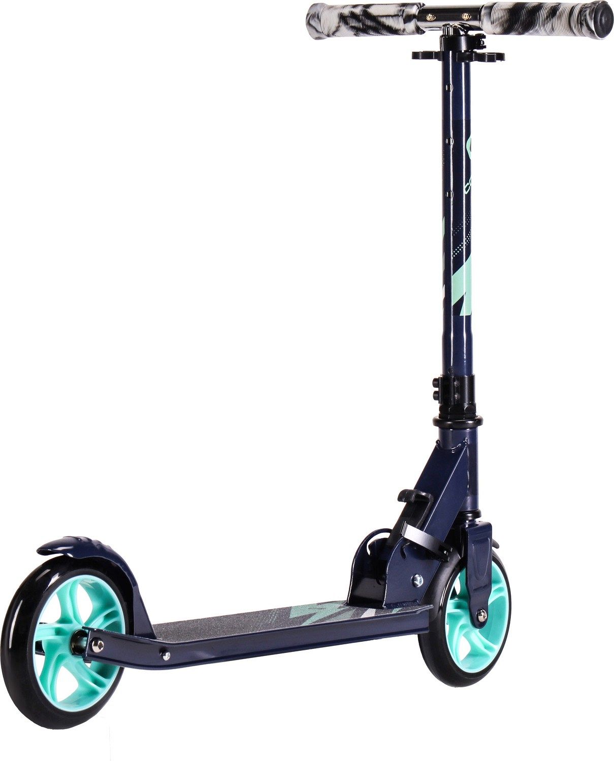 Самокат оснащён Т-образной металлической телескопической ручкой с мягкими накладками, регулируемой по высоте, и полиуретановыми прозрачными колесами. Колеса позволяют преодолеть любые препятствия и труднопроходимые участки дороги, что делает самокат идеальным для прогулок по городу.