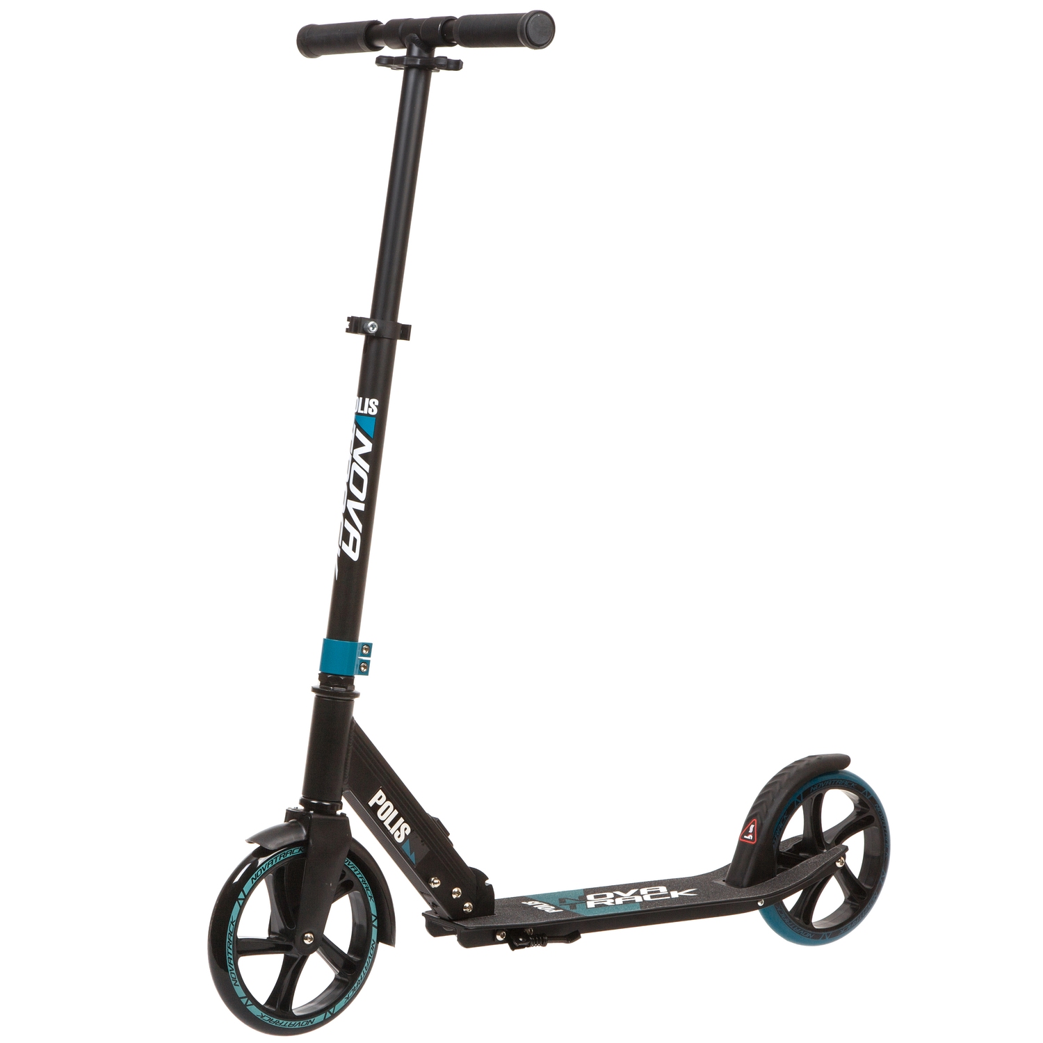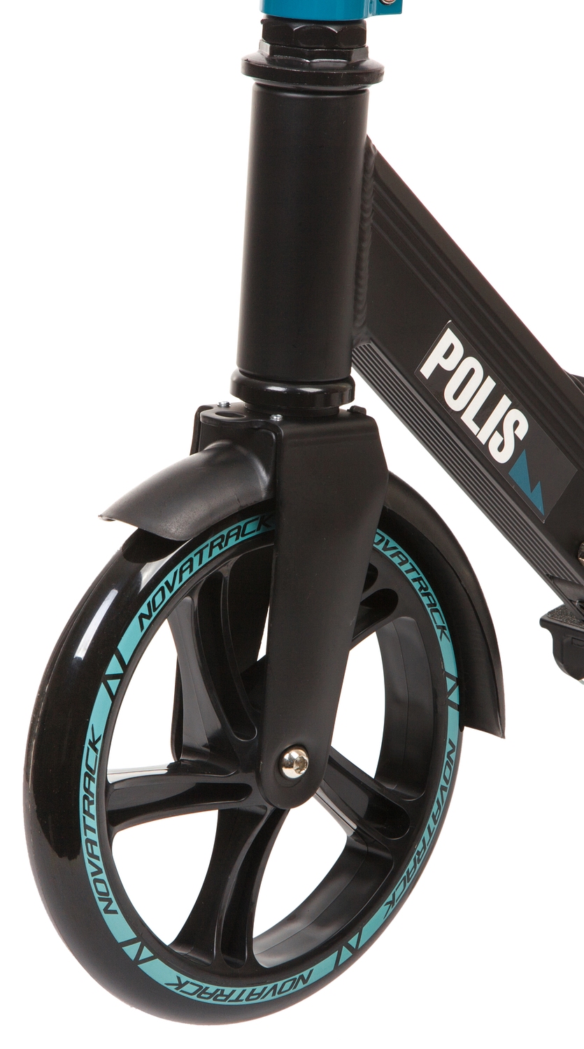 Novatrack POLIS 200 PRO10 - надежный самокат на полиуретановых колёсах размером 200 мм. Заниженная платформа с антискользящим покрытием способна выдерживать нагрузку до 100кг, позволяя активно и безопасно кататься как ребенку, так и взрослому. Система складывания самоката с помощью одной кнопки очень проста, безопасна и препятствует случайному открытию механизма во время езды.