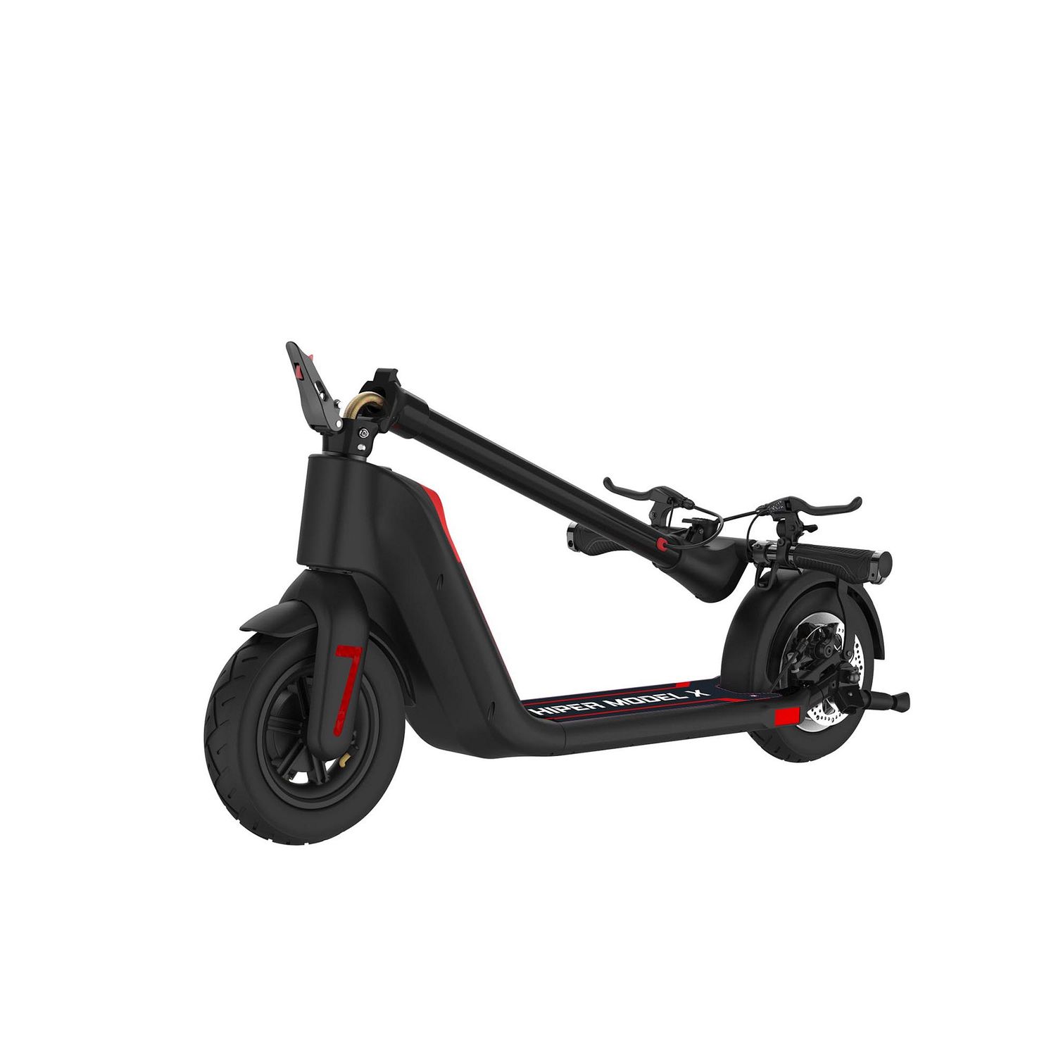 HIPER MODEL X - это стильный, мощный электросамокат, рассчитанный на большую нагрузку, с задним приводом и фарой. Отлично подходит для длительных прогулок за городом, в парке, по городским улицам. Благодаря складному механизму и компактным габаритам, электросамокат можно легко транспортировать, в том числе в общественном транспорте.