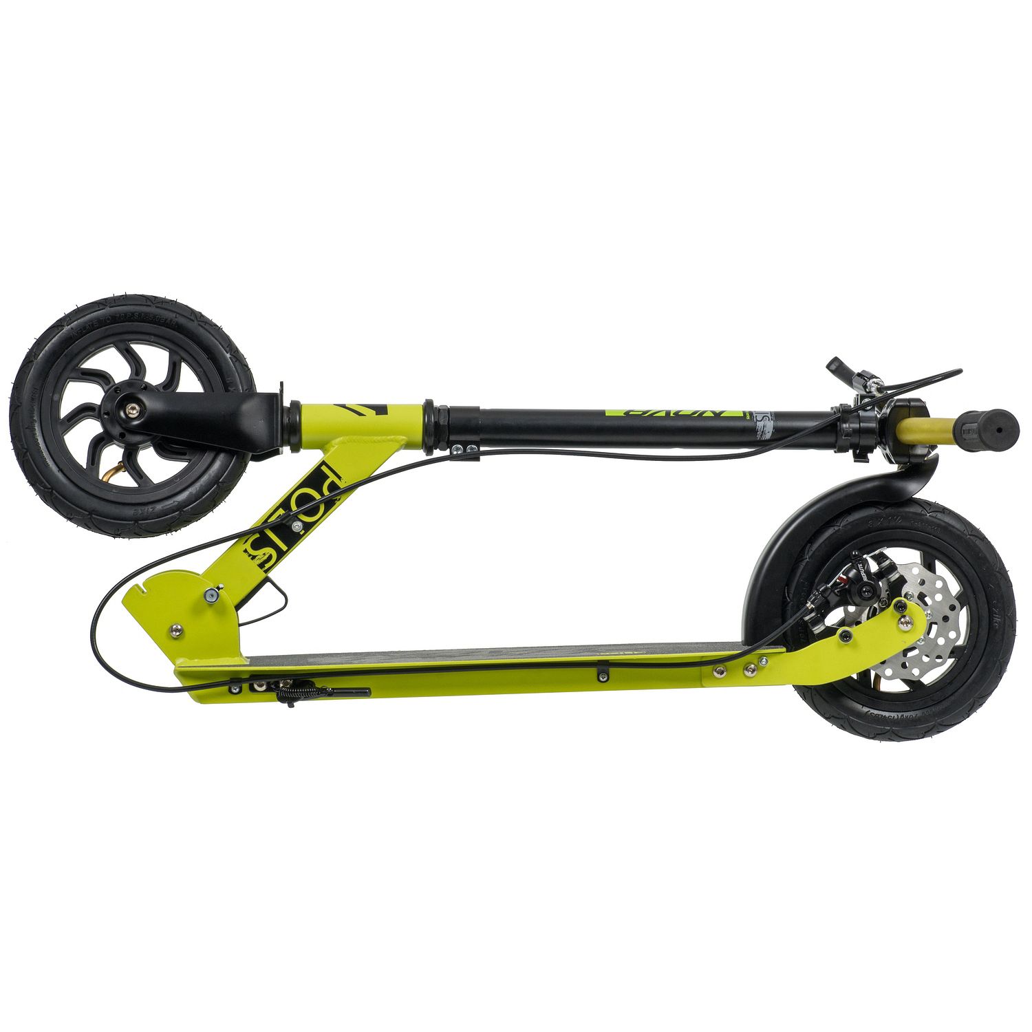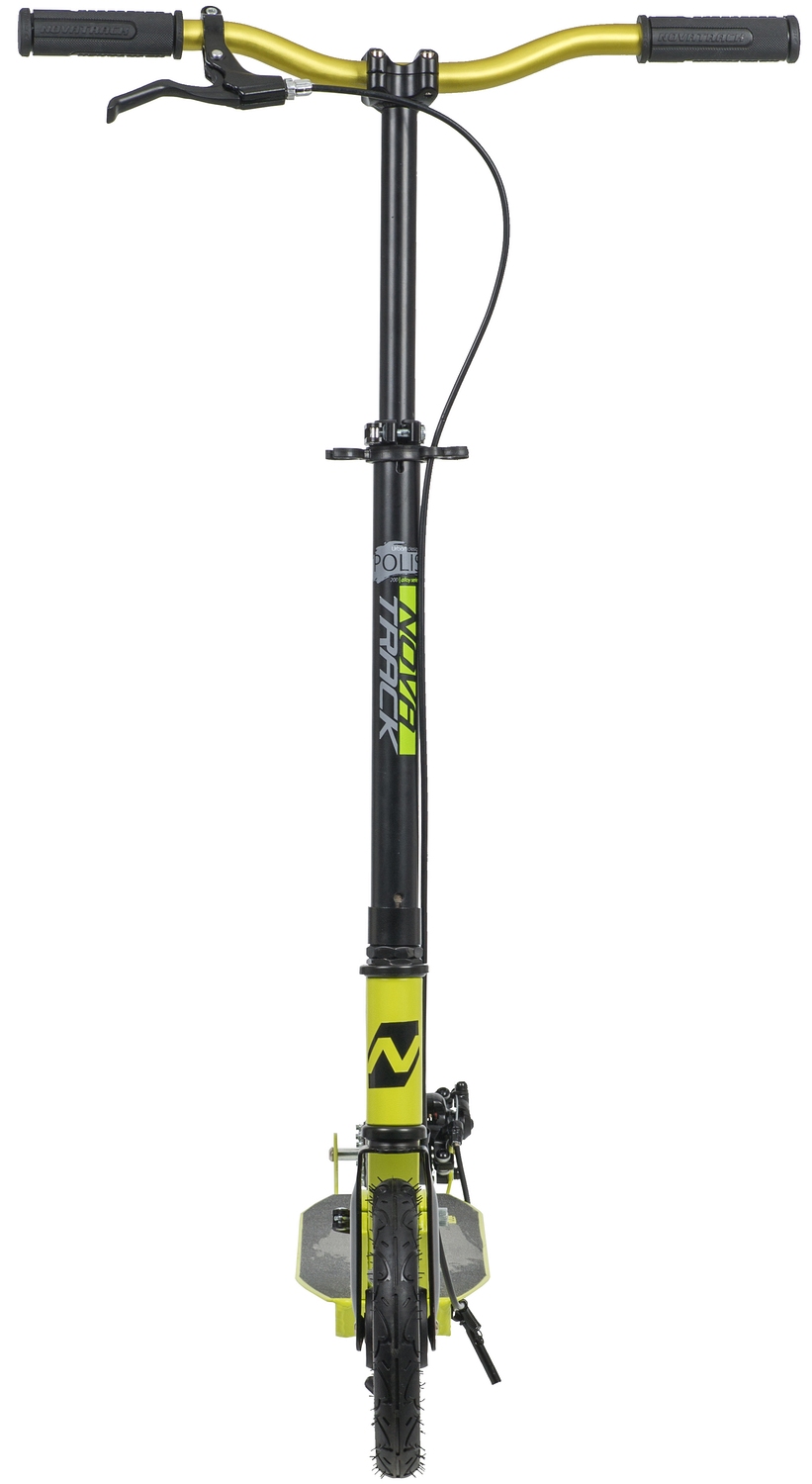 Novatrack Polis 200 Disc - надежный самокат на надувных колёсах размером 200 мм. Заниженная платформа с антискользящим покрытием способна выдерживать нагрузку до 100кг, позволяя активно и безопасно кататься как ребенку, так и взрослому. Система складывания самоката очень проста, безопасна и препятствует случайному открытию механизма во время езды. Самокат оснащен ручным дисковым тормозом.