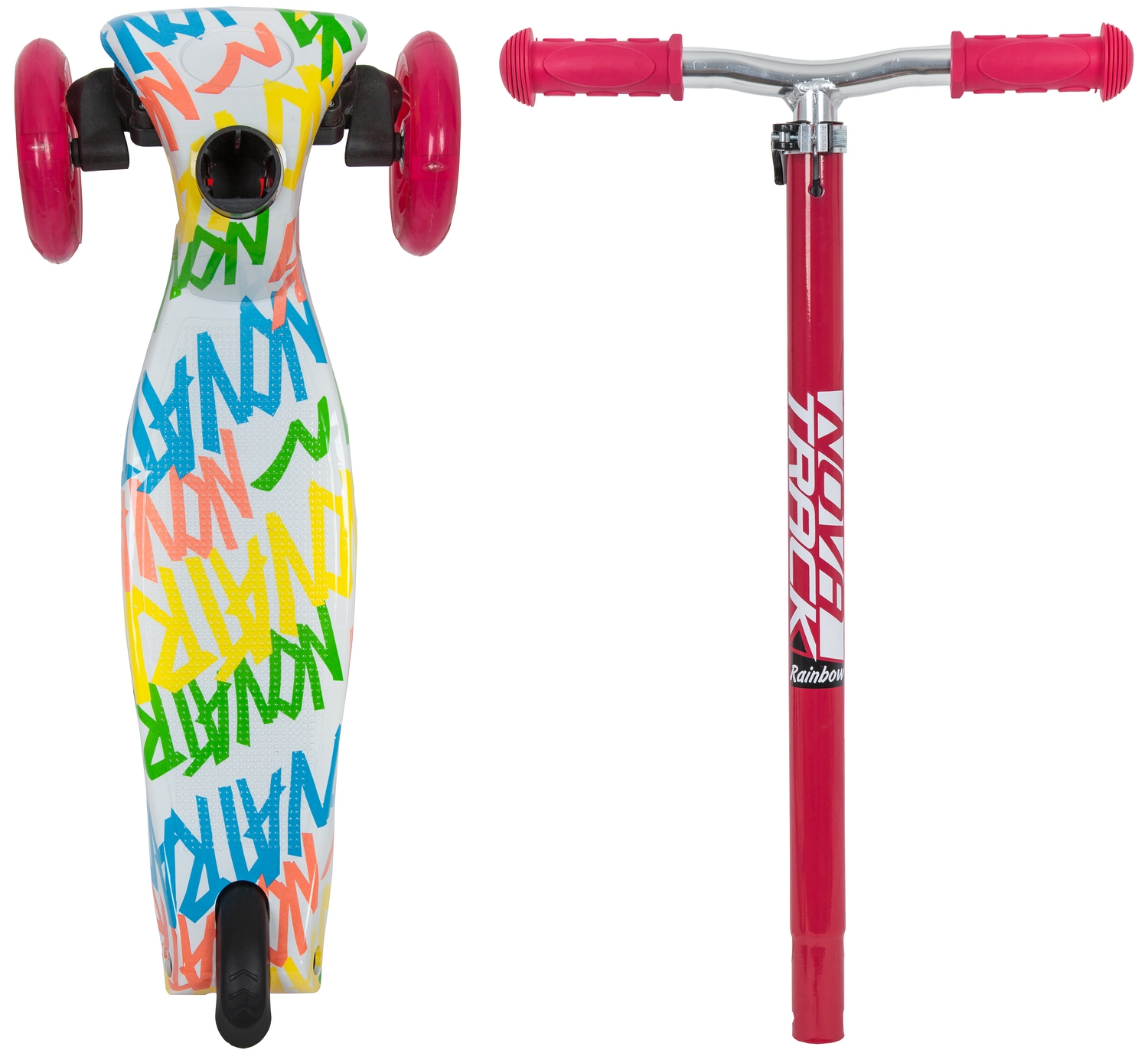 Самокат-кикборд Novatrack RainBow Start Graffiti (2020), белый-розовый