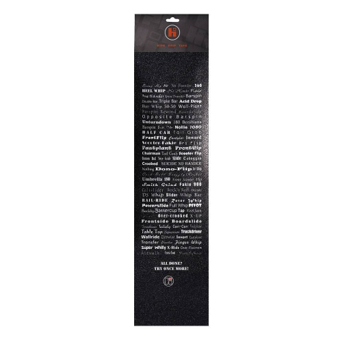 Оригинальная шкурка HIPE с названиями всех основных трюков и комбо. Размер 560 мм на 150 мм. Подходит для любых трюковых самокатов.
