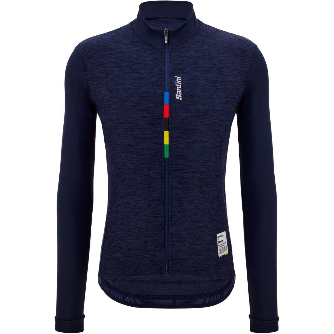 Веломайка с длинным рукавом утеплённая Santini UCI Official - Pure LS Fleece Jersey, темно-синий