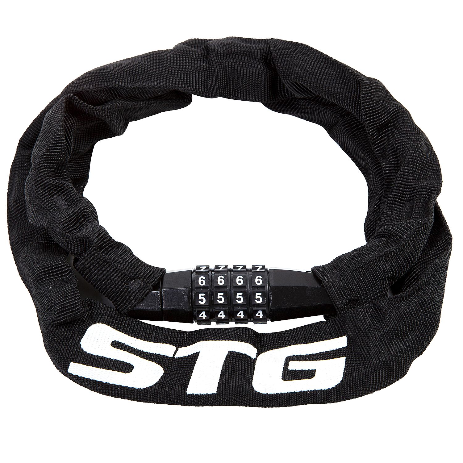 Замок велосипедный STG модель CHL-839 на коде. Диаметр - 4 мм, длина - 90 см. Цепь в матовой оплетке.