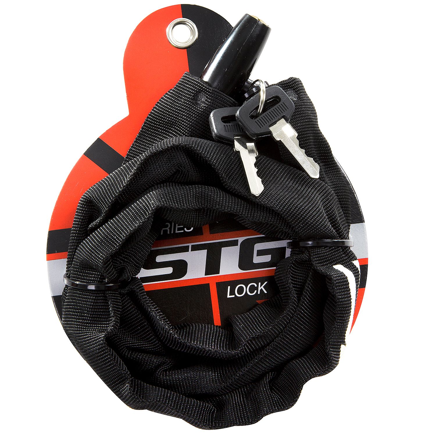 Велозамок STG CHL-811 на ключе. Диаметр - 4 мм, длина - 90см. Цепь в матовой оплетке.