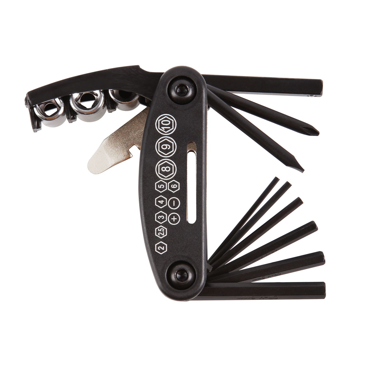 Шестигранники - 2мм, 2,5мм, 3мм, 4мм, 5мм, 6мм, накидные ключи - 8мм, 9мм, 10мм, отвертки - крестовая, плоская, монтажка, спицевой ключ