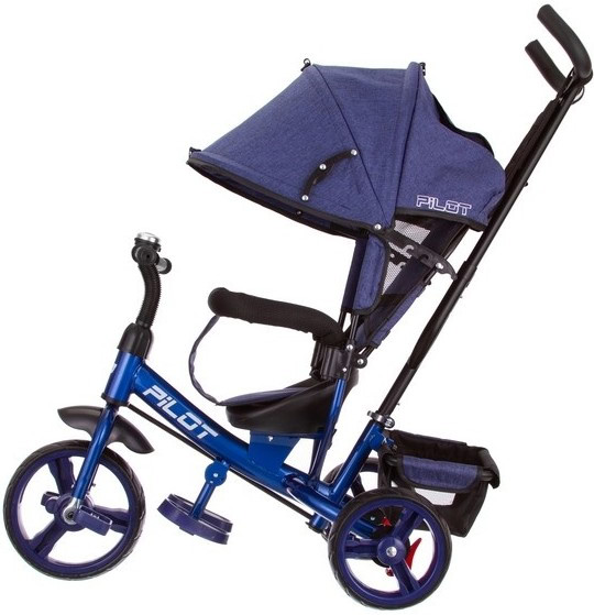 Велосипед трехколесный Pilot PT3, с ручкой управления, синий