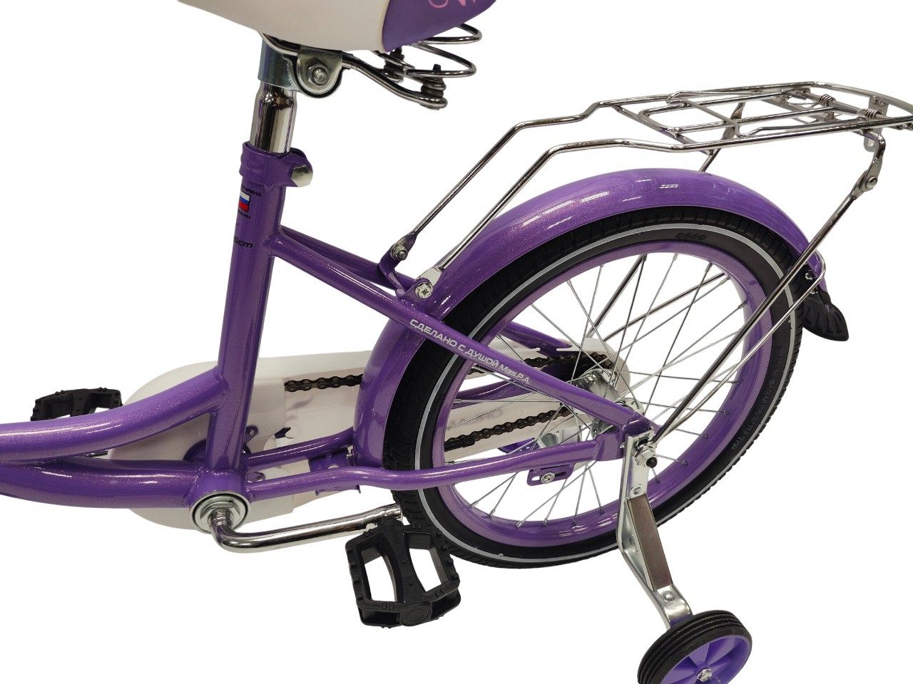 – Комплект аксессуаров. Включает металлические крылья, боковые колёса и корзинку для мелочей.
