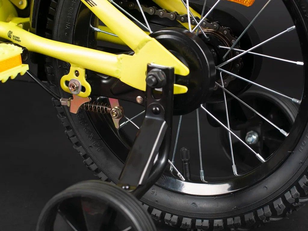 Дополнительные боковые колёса придают велосипеду стабильность, помогая юным райдерам быстро освоить управление. Они легко снимаются, когда ребёнок научится держать равновесие, что позволяет адаптировать велосипед под его растущие навыки. Защита цепи предотвращает попадание одежды в механизмы, а крылья защищают от грязи и воды, что особенно актуально во время дождливой погоды.