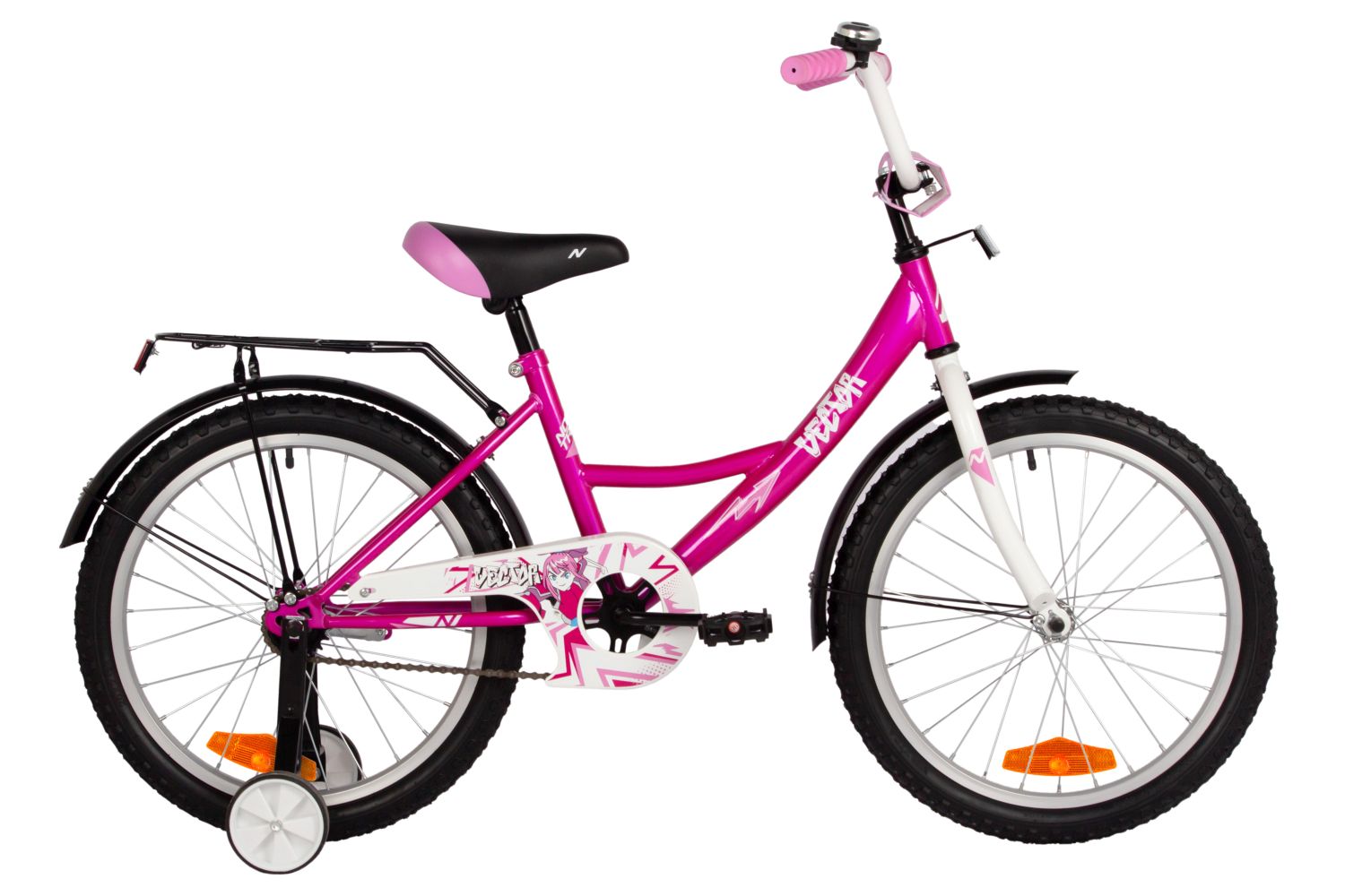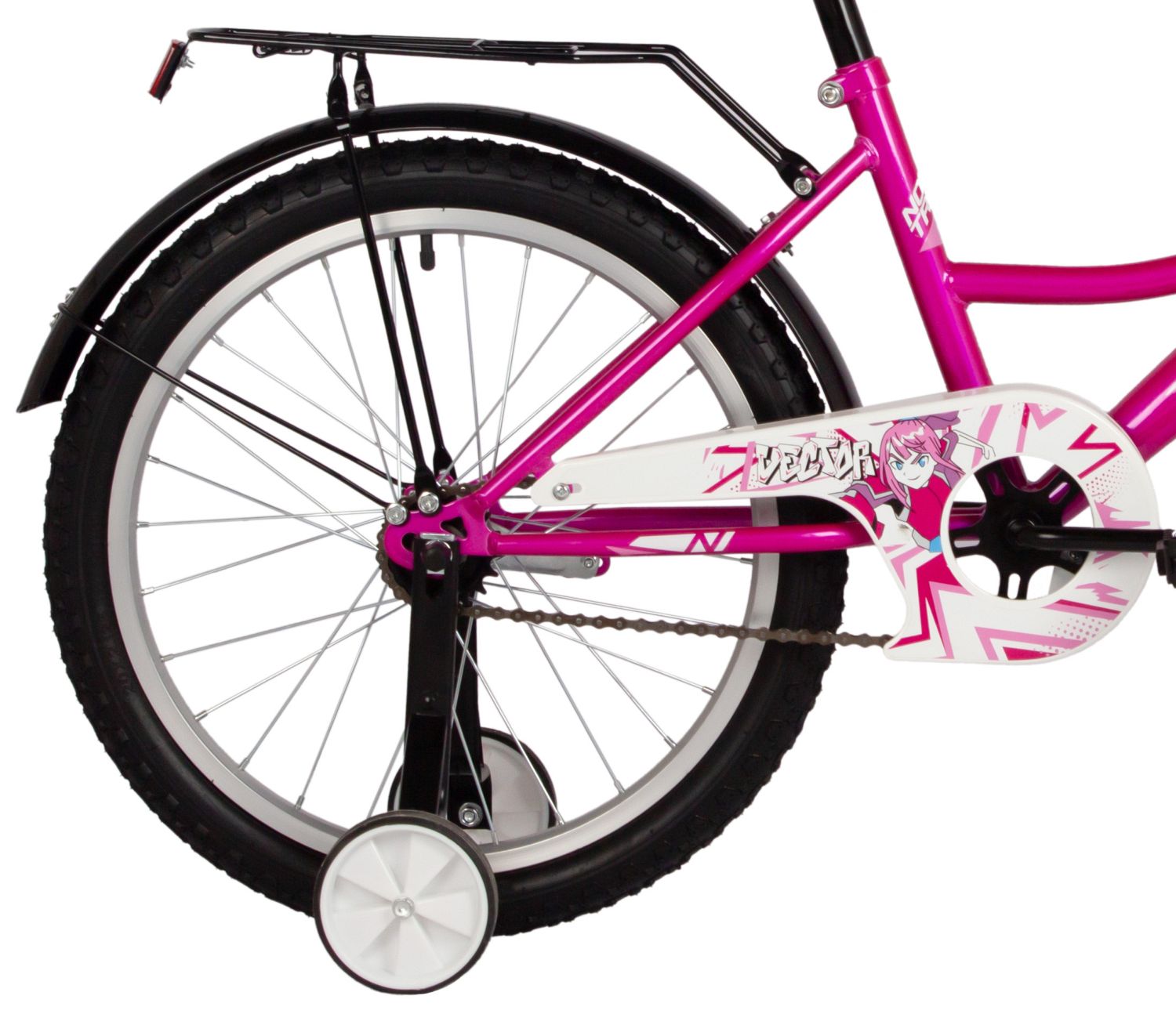 Комплектация велосипеда включает в себя грязезащитные крылья, багажник, защиту цепи и боковые дополнительные колёса, делая его ещё более безопасным и удобным для детей. Грязезащитные крылья защищают от брызг и грязи, а багажник позволяет перевозить небольшие вещи, что особенно удобно во время прогулок. Боковые колёса обеспечивают дополнительную стабильность, тем самым помогая детям чувствовать себя уверенно на дороге.