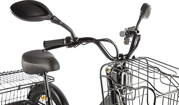 Также в комплекте стальные полноразмерные крылья, металлическая корзина на руле, задняя вместительная корзина и передняя яркая светодиодная фара.