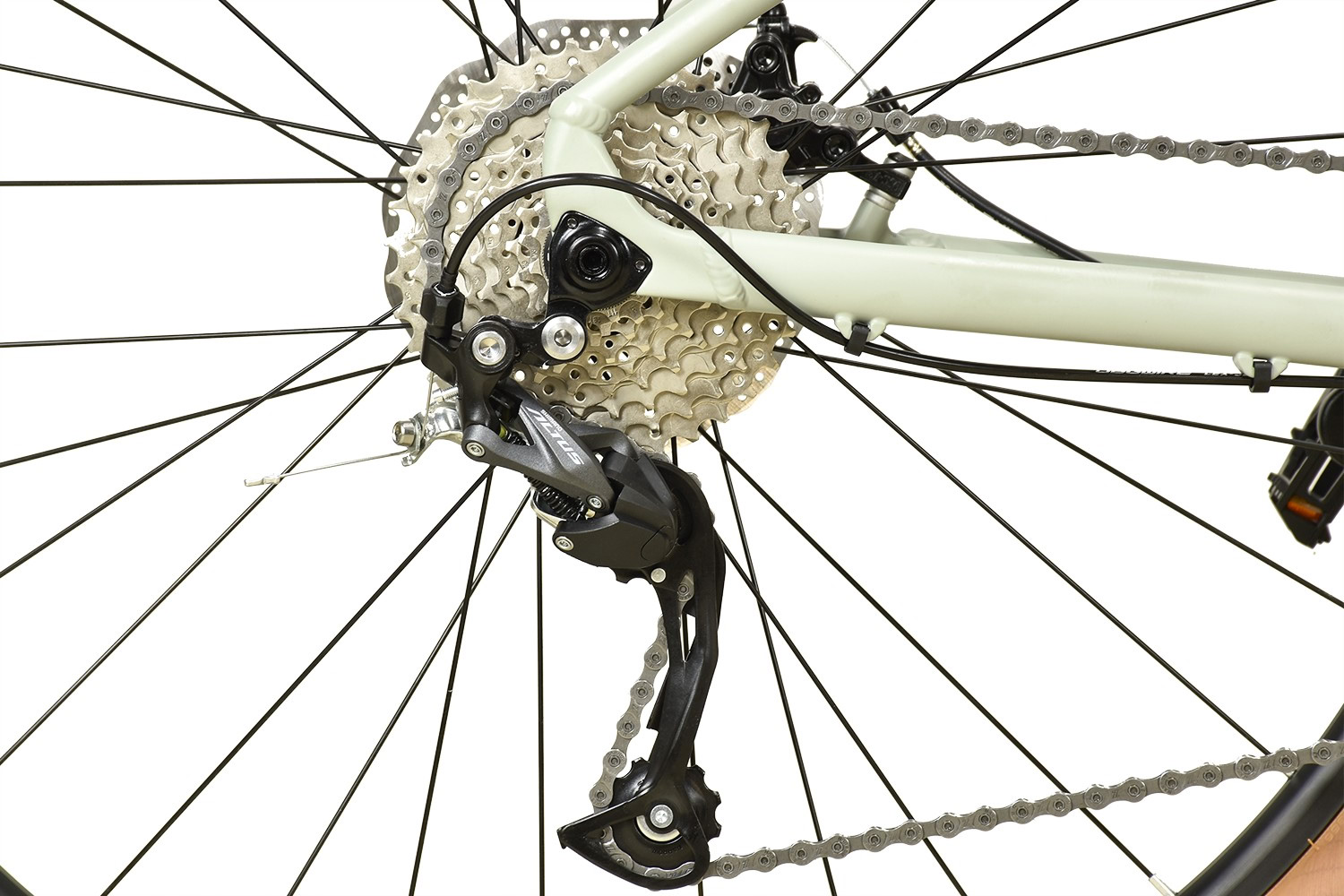 Система переключения Shimano Altus с 9 скоростями и задним переключателем RD-M2000 обеспечивает плавное переключение, а манетка Microshift SL-M759 делает управление простым и удобным. Кассета Sunshine MTB-CS-HR9-36 позволяет легко справляться с небольшими подъёмами и крутыми спусками.