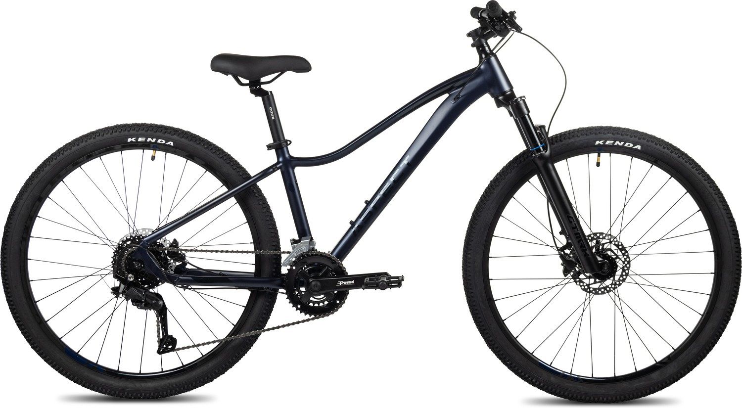 Для максимального комфорта и контроля велосипед оснащен воздушно-масляной амортизационной вилкой GTMRK 367 AIR/HLO/REB с ходом 100 мм. Она дает возможность плавно преодолевать неровности местности и сглаживать вибрации, обеспечивая вам стабильность и уверенность на трассе. Система переключения скоростей Shimano Cues RD-U4020 с 18 передачами позволяет легко адаптироваться к различным условиям и подъемам. Дисковые гидравлические тормоза Shimano MT200 дают надежное и точное торможение в любых условиях, даже на высоких скоростях. Обода из легкого сплава Alloy Double Wall и покрышки Kenda K1153 27.5x2.1 обеспечивают отличное сцепление с грунтом и долговечность.