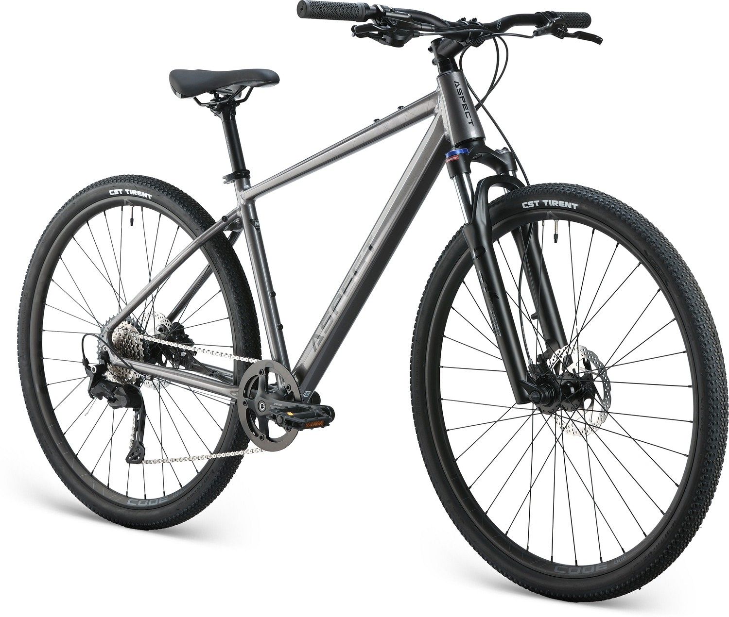 Дисковые гидравлические тормоза Shimano MT200 гарантируют мощное и точное торможение, обеспечивая безопасность в любых условиях. Колёса диаметром 28 дюймов и покрышки CST Tirrent размером 700x42C отвечают за отличное сцепление и стабильность на различных покрытиях. Промышленные подшипники и алюминиевые втулки Code H1 добавляют плавности и надёжности в движении, делая каждую поездку комфортной и приятной.