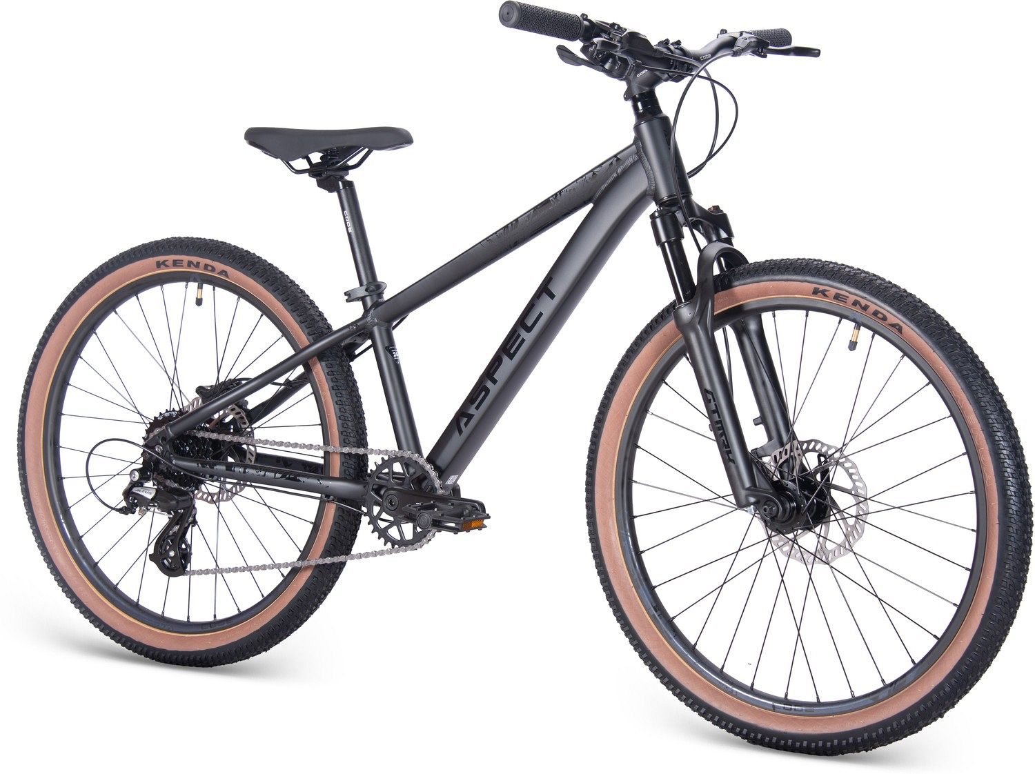 Aspect Air Jr оснащён технологичной алюминиевой рамой ALU 6061 с гидроформированными трубами и внутренней прокладкой кабелей, что придаёт велосипеду современный и аккуратный вид. Пружинно-эластомерная вилка GTMRK 210 MLO с ходом 60 мм обеспечивает плавное преодоление неровностей, делая каждую поездку максимально комфортной.