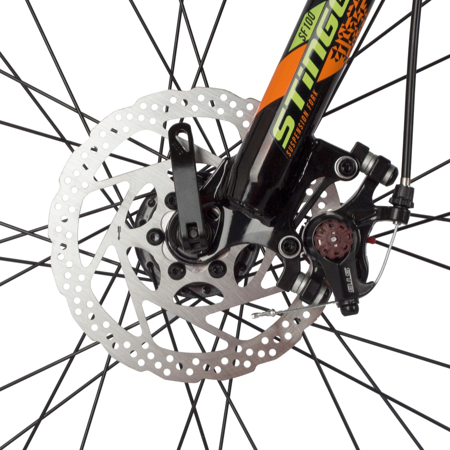 Велосипед оборудован механическими дисковыми тормозами с диаметром ротора 16 см. Колесный диаметр составляет 26 дюймов. Расположенная впереди вилка оборудована амортизатором на пружинах (длина хода вилки доходит до 100 мм). Блокировать амортизаторный ход невозможно.