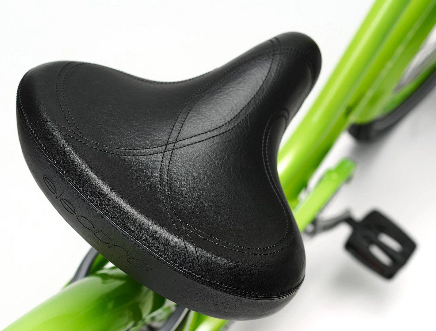 Руль с индивидуальным изгибом и подъемом 4" из сплава, а также прошитые вручную грипсы Electra делают управление удобным. Эргономичное седло с амортизирующими эластомерами добавляет комфорта даже при длительных поездках.