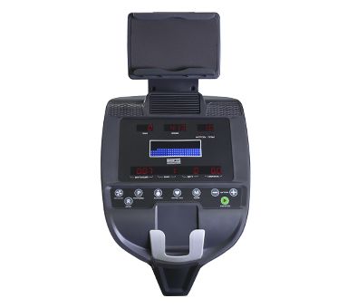Тренировочный компьютер представлен многофункциональным LED дисплеем с точечной матрицей профессионального уровня. Основной экран дополняют 7 небольших буквенно-цифровых LED-дисплея с красной подсветкой. На экран компьютера выводятся все основные данные – время, скорость, дистанция, уровень нагрузки, калории, ватты, темп, фитнес тест, пульс и жироанализатор. В программный пакет входят 12 предустановленных программ, в которых используются различные виды тренировок. Помимо предустановленных программ, можно воспользоваться самостоятельно регулируемым ручным режимом, а также создать собственную программу в одном из 4-х пользовательских режимов. 3 пульсозависимые программы отвечают за тренировку тех пользователей, которым важно контролировать верхние пределы частоты сердечного ритма. Еще одна функция - жироанализатор Body Fat - даст оценку параметрам, связанным с весом. Плюс ко всему есть Ватт-программа.