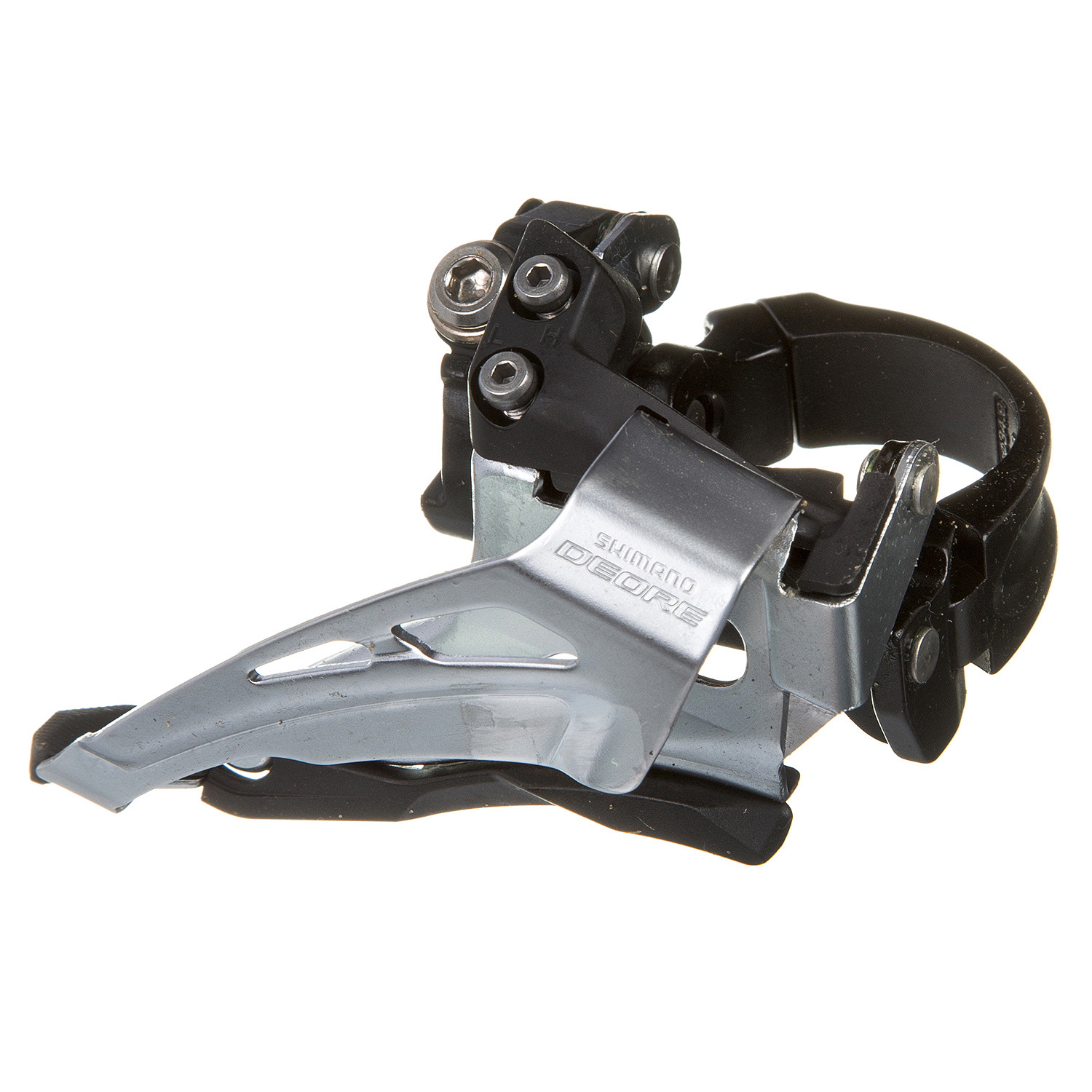 Переключатель передний Shimano Deore FD-M618 на 2x10 скоростей для горных и туристических велосипедов. Обеспечивает надежное и уверенное переключение передач.Переключатель совместим с цепями Hyperglide на 10 скоростей. Модель для системы с максимальной звездой 3638T. Диаметр хомута - 34,9 мм.