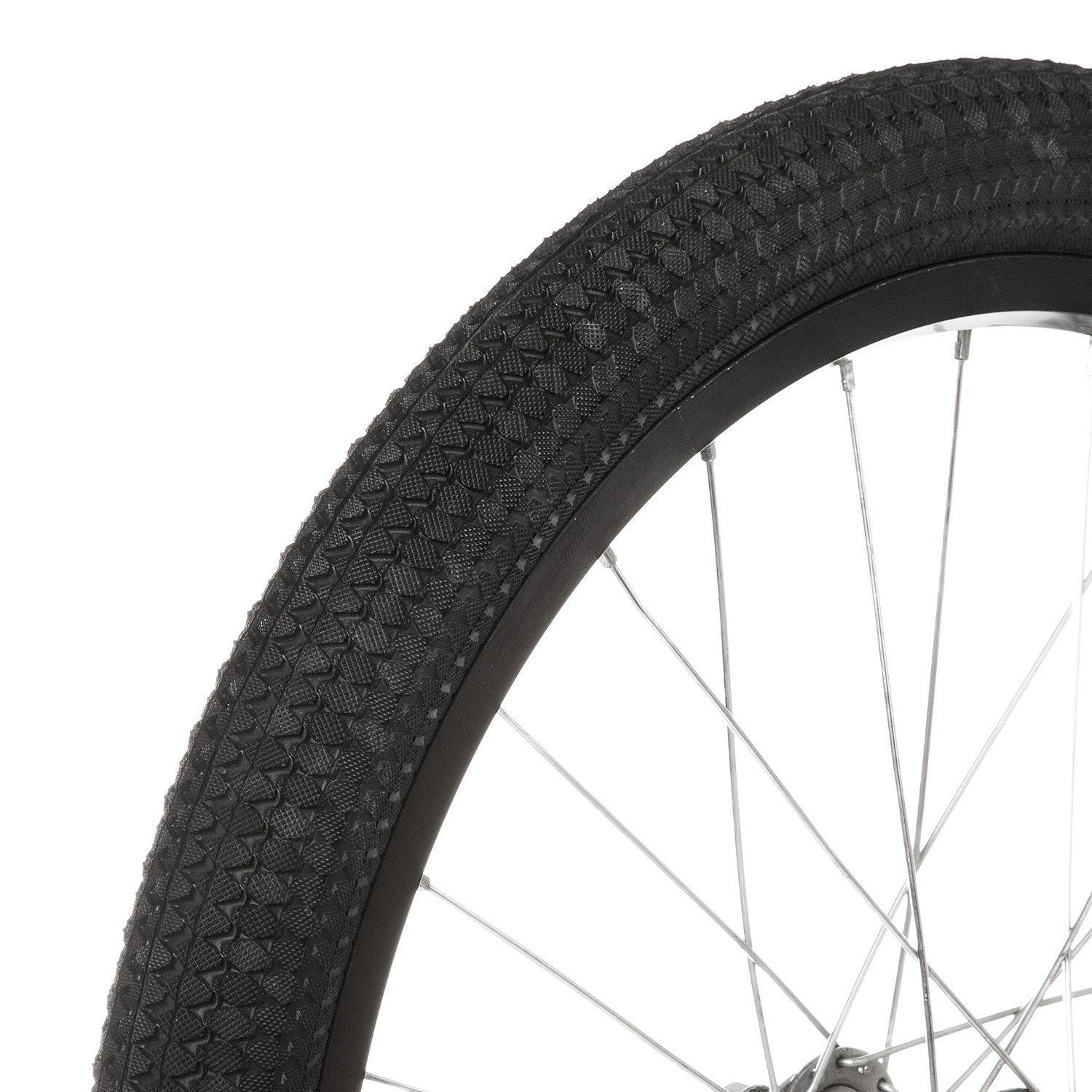 Kenda Premium Kiniption , ромбовидный дизайн грунтозацепов опоясывает протектор от одного борта покрышки к другому, одновременно защищая боковые стенки, благодаря плотному переплетению нитей рисунок протектора имеет развитый рефленый профиль, придающий структурную целостность и великолепную тягу при любом угле наклона, отлично подходит для стрита, прыжков на рампе или скольжения, а также для твердого грунта.