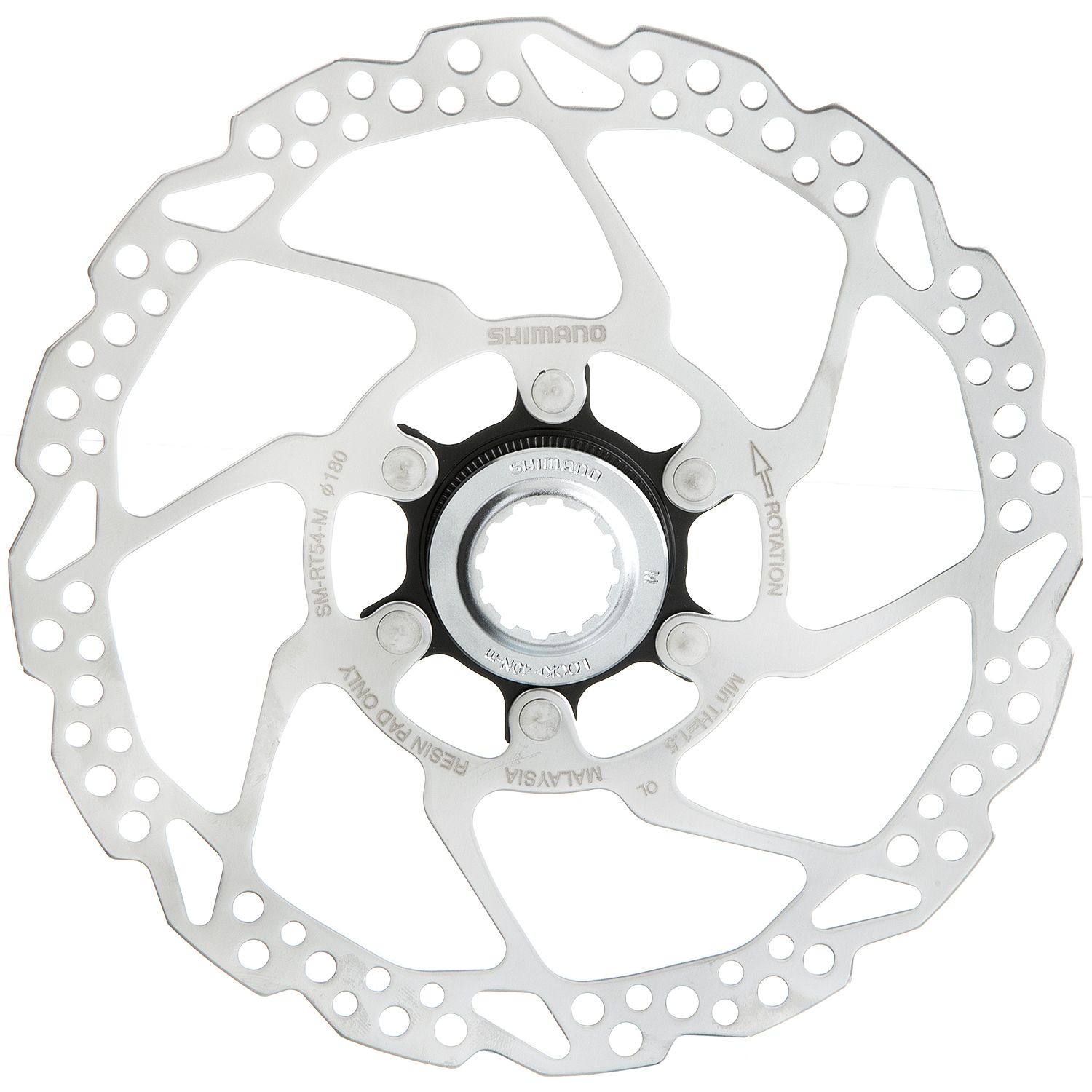 Тормозной диск Shimano RT54 Диаметр - 180 мм. Тип крепления C-Lock. Рото только под пластиковые колодки.