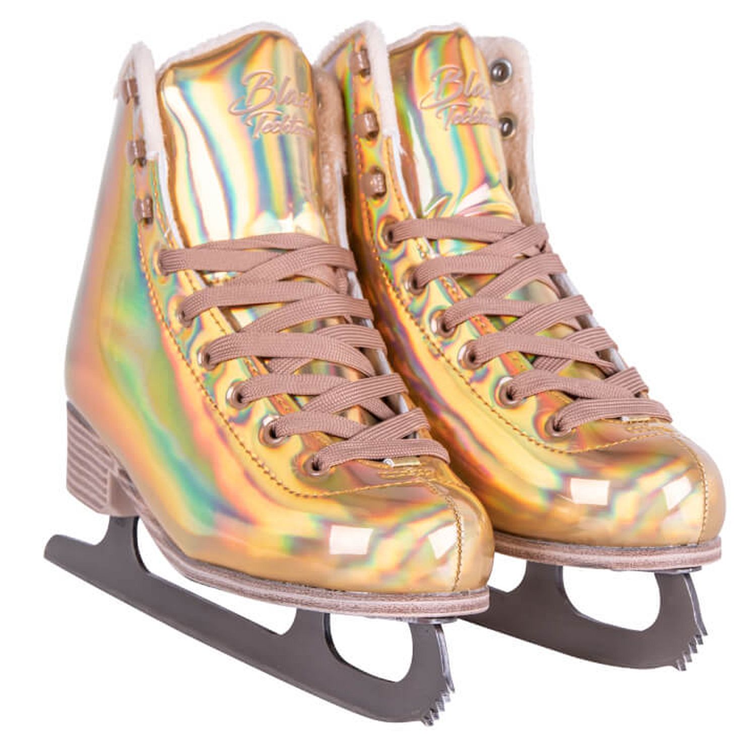 Яркие женские фигурные коньки, в которых вы точно не останетесь незамеченными! Ботинок коньков выполнен из искусственной кожи с галографическим эффектом и переливается разными цветами. Подкладка ботинка изготовлен из синтетического меха.