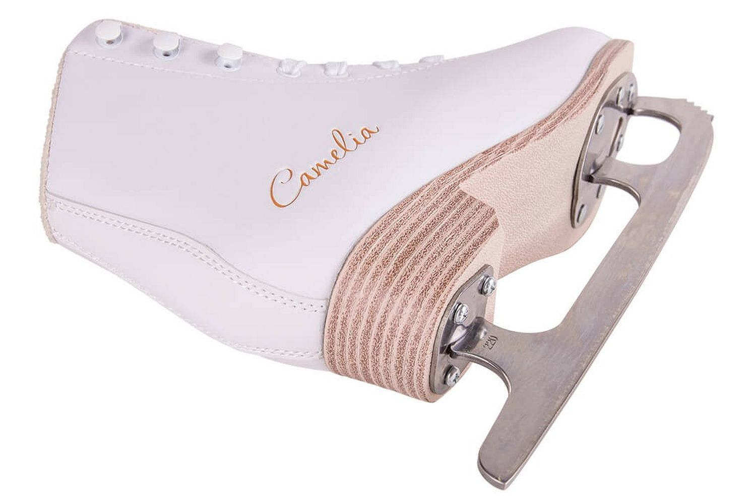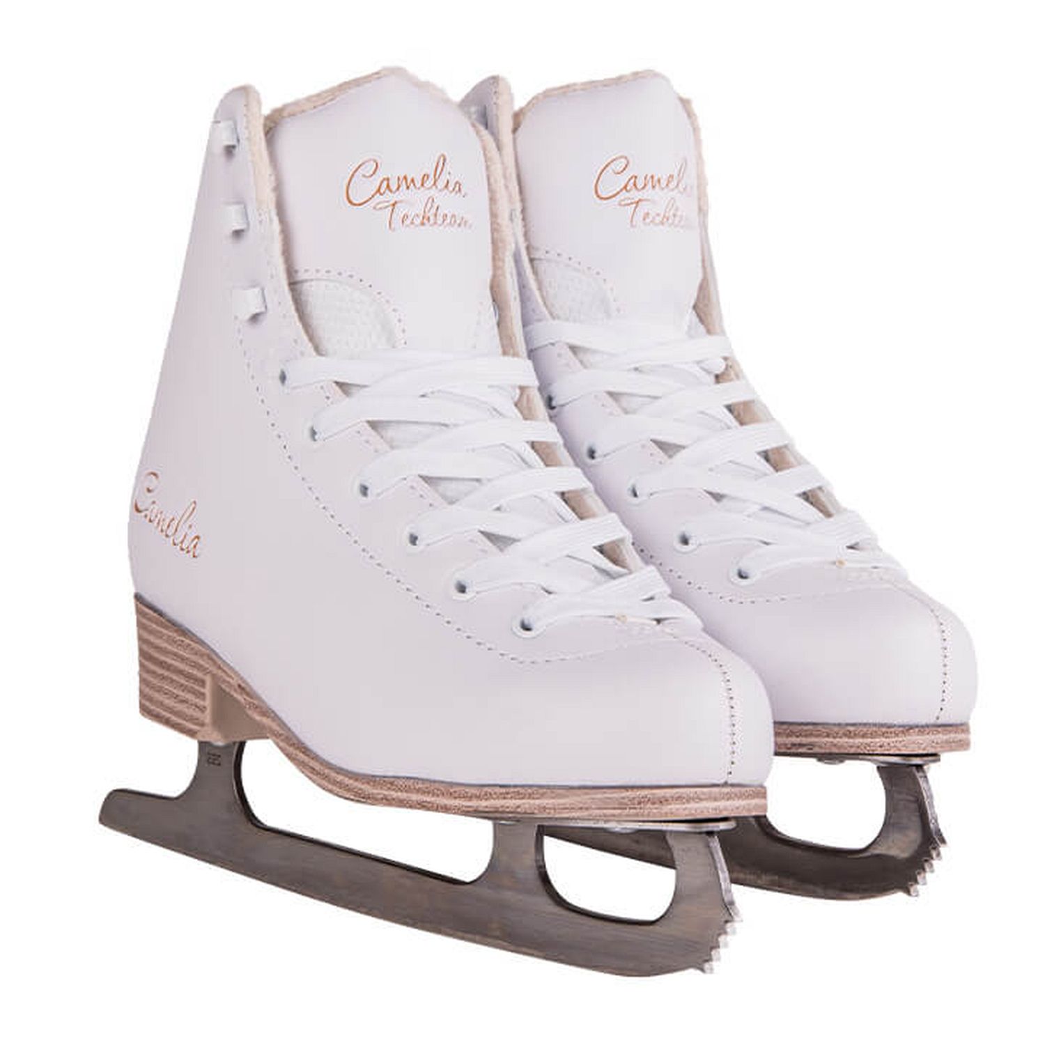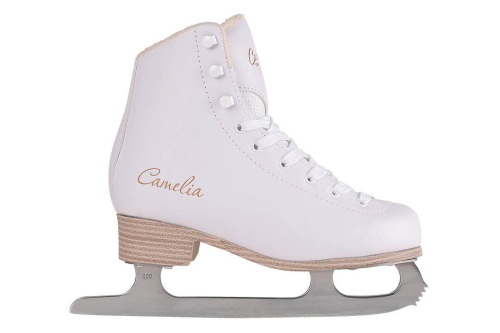 Практичные женские фигурные коньки с ботинком из морозостойкой искусственной кожи и подкладкой из короткого синтетического меха.