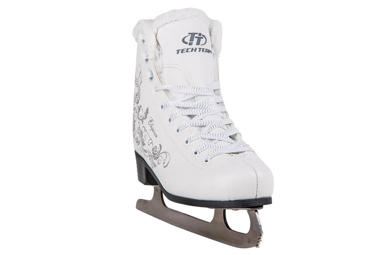 Новая продвинутая модель коньков Elegance от российского бренда Tech Team будет по душе любой девушке. Дизайн коньков с узорами в виде серебра и надписью «Elegance» выделят Вас из большинства! Коньки очень удобно снимать и одевать при наличии одной только шнуровки, вверху установлены специальные крючки. Материал коньков сделан из морозостойкой искусственной кожи. Внутренняя часть состоит из мягкого и теплого меха. Удобный и прочный каблук сделан из полипропилена.