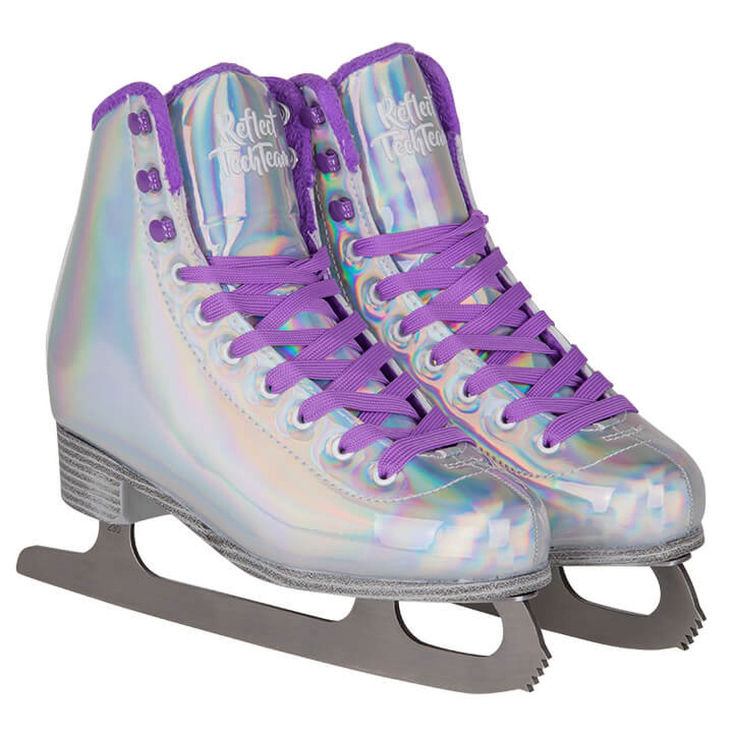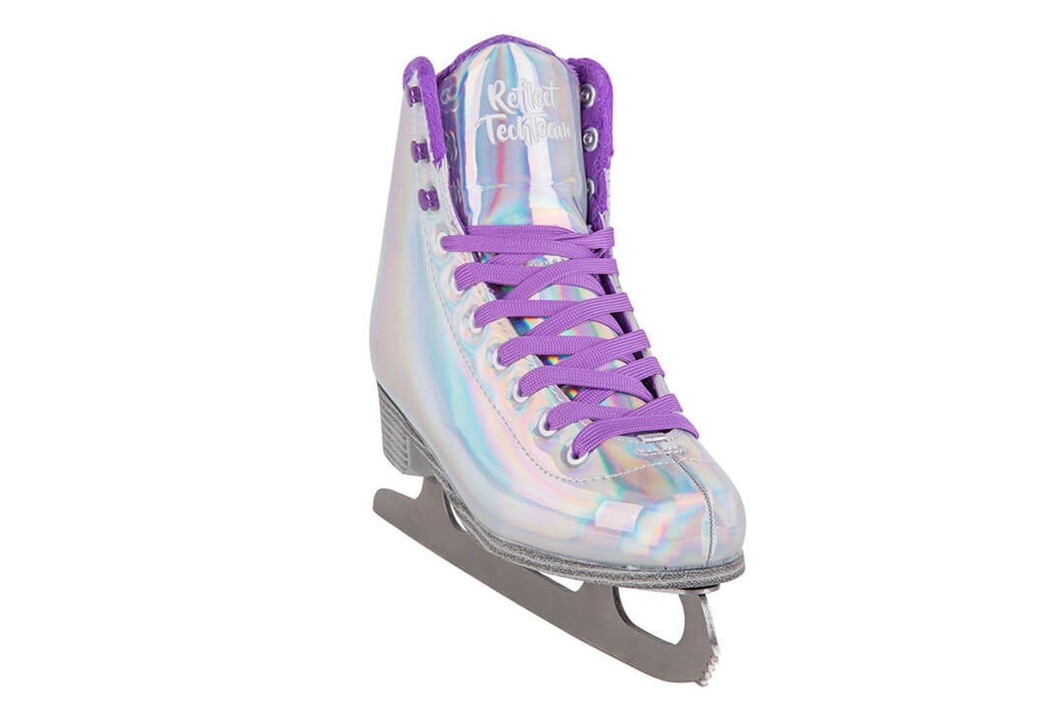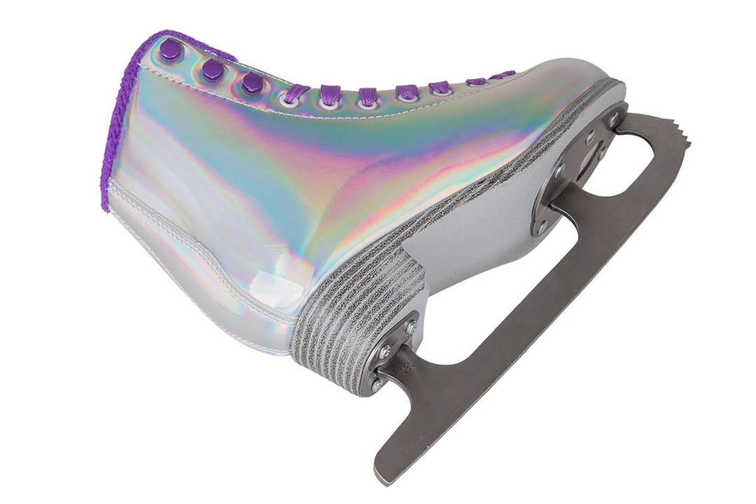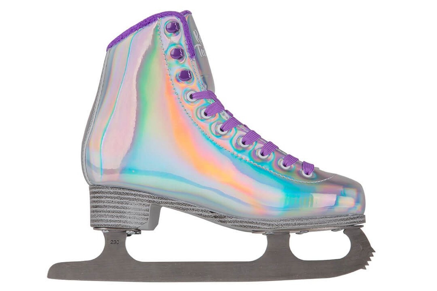 Яркие женские фигурные коньки, в которых вы точно не останетесь незамеченными! Ботинок коньков выполнен из искусственной кожи с галографическим эффектом и переливается разными цветами. Подкладка ботинка изготовлен из синтетического меха.