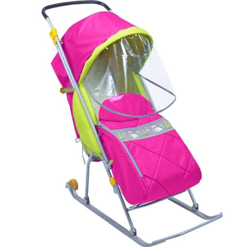 Складные санки-коляска "Тимка Люкс" - они предназначены для перевозки детей в положении "сидя" и "полулёжа" от 1 года до 4-х лет по плотному снегу или льду. Модель оснащена колёсиками, что делает возможным её перемещение по асфальту и другому твёрдому покрытию. При необходимости родители могут перекинуть ручку и везти ребёнка лицом к себе, общаясь с ним. У санок имеется мягкий и тёплый чехол для ножек со светоотражающей окантовкой для безопасности малыша в вечернее время. От осадков и ветра кроху защищает прозрачный тент, присоединяемый к козырьку. Санки оснащены большим капюшоном, который позволяет ребёнку чувствовать себя комфортно в шапке с помпоном.