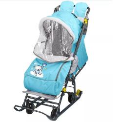 Санки-коляска Умка У3-2/10, с медвежонком, голубой
