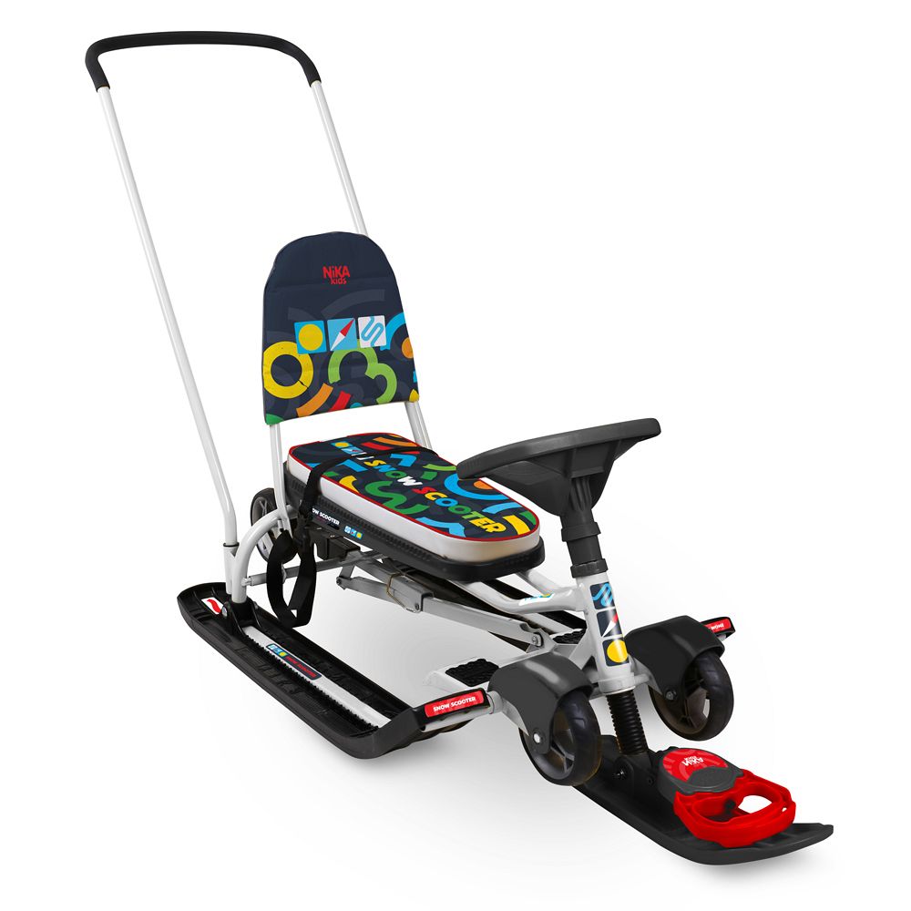 Снегокат НИКА Тимка спорт 6 – это превосходный выбор для активных зимних прогулок с детьми в возрасте от 4 до 7 лет. Этот стильный снегокат, выполненный в графичном дизайне, сочетает в себе функциональность и комфорт, что делает его идеальным спутником для весёлых катаний по снежным склонам. Модель 2 в 1, оснащённая механизмом выдвижных шасси, позволяет легко переключаться между полозьями и колесами, что существенно повышает удобство передвижения как по снегу, так и по твёрдым поверхностям.